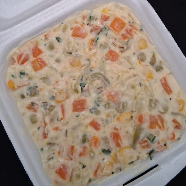 Cenoura, Batata, Milho, Ervilha, Azeitona, Cheiro Verde e Maionese