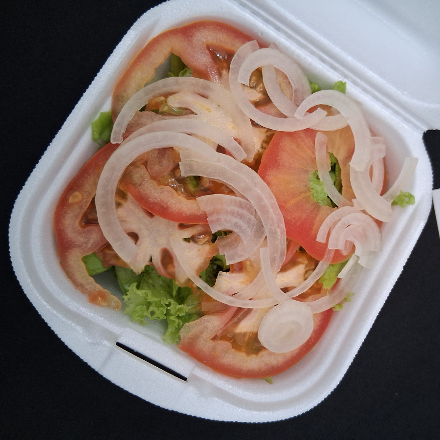 Acompanha alface, tomate e cebola