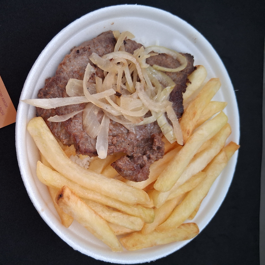Acompanha arroz, e fritas (feijão opcional)