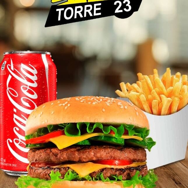 Pão de hambúrguer, bacon, frango, calabresa, hambúrguer, Catupiry, ovo, presunto, queijo, milho, ervilha, batata palha e tomate.