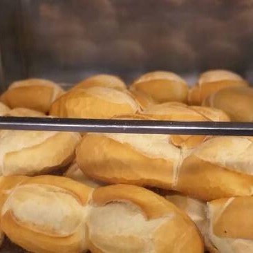 Contra Filé acebolado e acompanha pão francês fatiado.