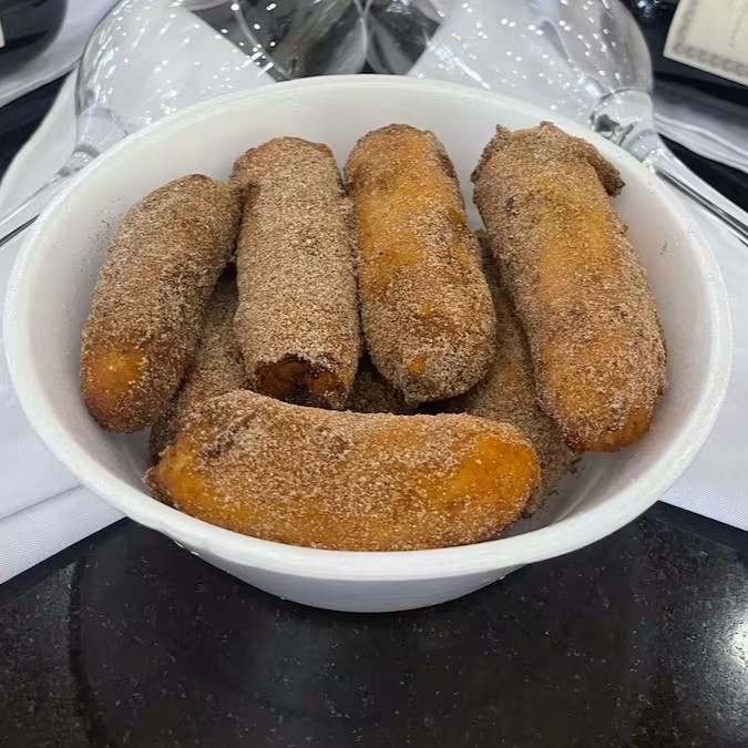 Com canela e açúcar