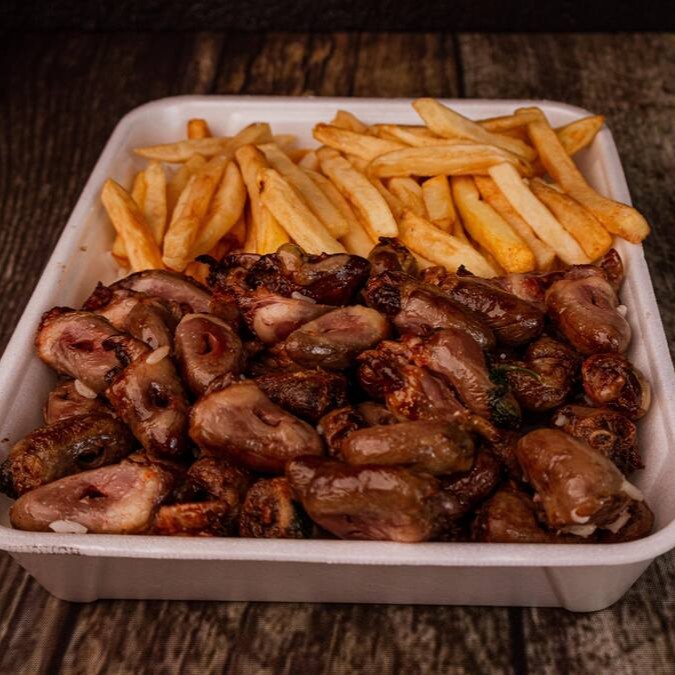 Coração, arroz, feijão, batata, farofa