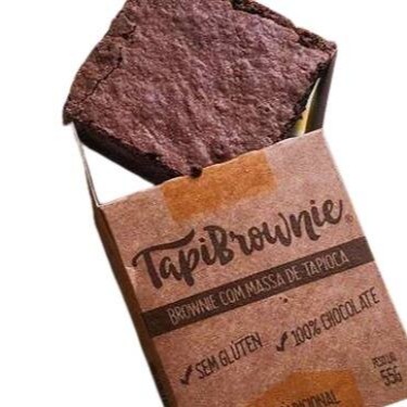 Tapibrownie Brownie de Tapioca (55g) Brownie feito com massa de tapioca, 100% chocolate e sem glúten. Ideal para indivíduos com restrição ao glúten. Contém açúcar. Benefícios: Sem glúten | Feito com fécula de mandioca e Chocolate Meio Amargo