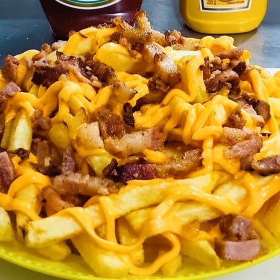 Batata palito com cheddar e bacon