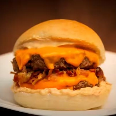 Pão De Hambúrguer, 2 suculentos Hambúrgueres Bovino 180g, Double Cheddar, Molho Especial E Bacon.