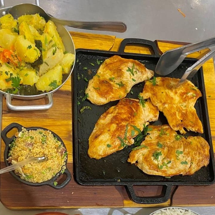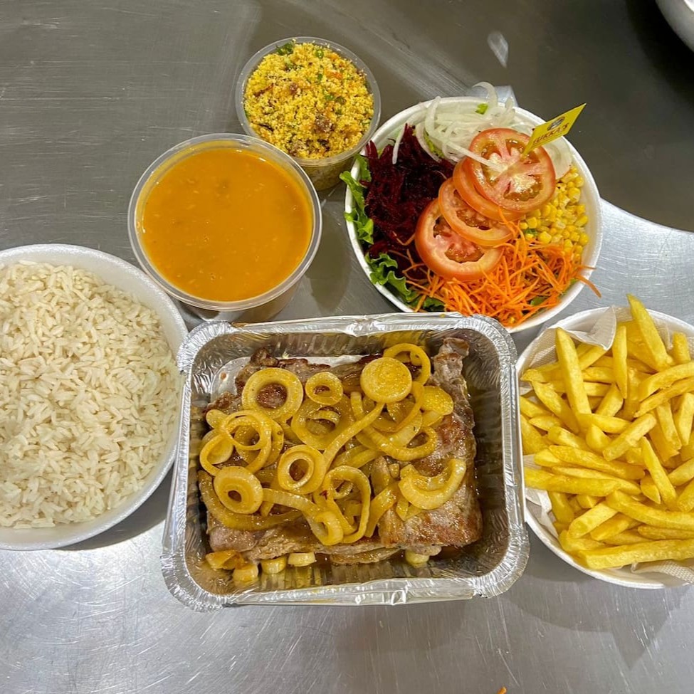 Acompanha arroz, feijão, 2 misturas e 2 guarnições.