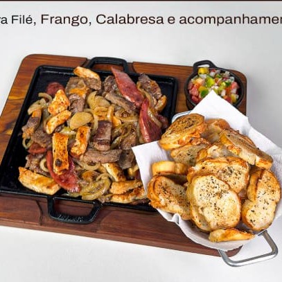 Calabresa, contra filé e filé de frango acebolado (acompanha pao fresco e vinagrete )