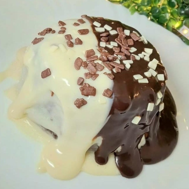 Mini Vulcão, muito fofinho de chocolate com cobertura de chocolate preto e Ninho. Servido quentinho aproximadamente 250g . Sobremesa individual ou para duas pessoas. Serve individual ou até 2 pessoas.