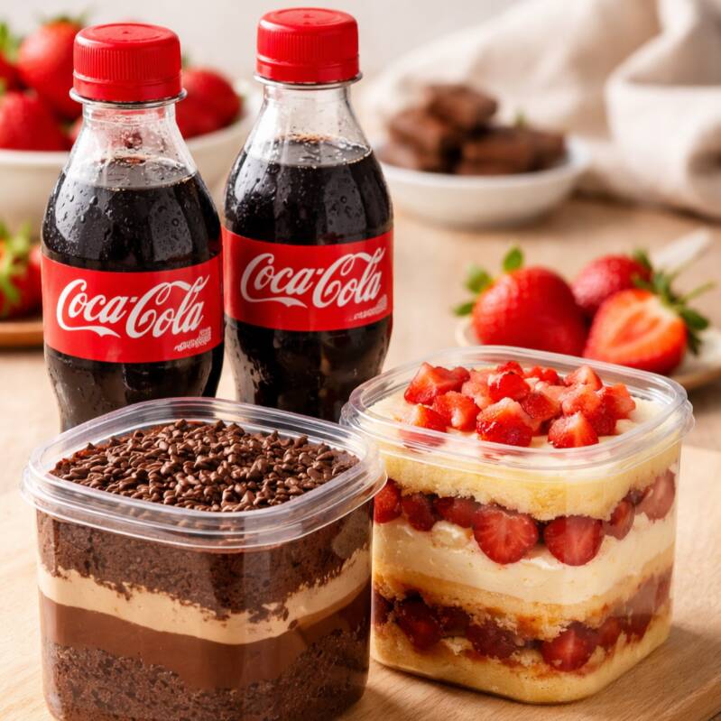 Escolha seu bolo favorito e leve uma Coca-Cola 200 ml original ou sem açucar