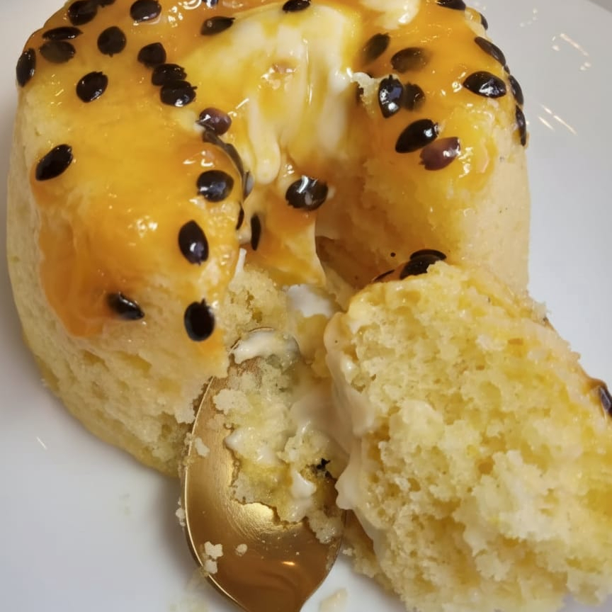 massa de maracujá coberto com ninho e geleia natural de maracujá