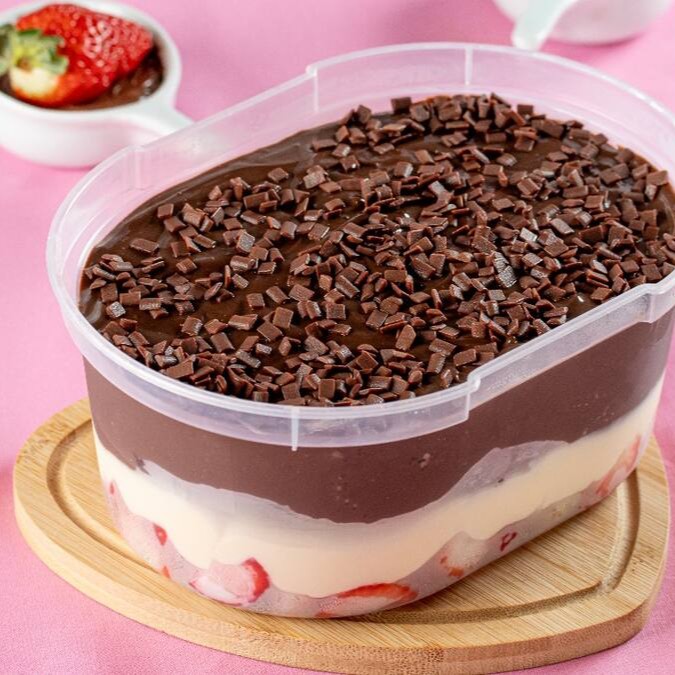 Massa de chocolate fofinha, coberta com brigadeiro de chocolate nobre e morangos frescos. Perfeito para momentos especiais! Peso: 300 gramas.Fresquinho, com calda quentinha e recheio irresistível. Uma explosão de sabor em cada colherada.*Favorite nossa loja e receba promoção exclusivas.