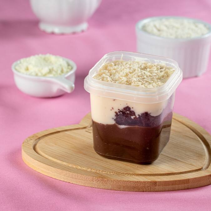 Massa de chocolate macia, coberta com brigadeiro de chocolate nobre e um delicioso creme de coco. Combinação perfeita! Peso: 350 gramas.Fresquinho, com calda quentinha e recheio irresistível. Uma explosão de sabor em cada colherada.*Favorite nossa loja e receba promoção exclusivas.