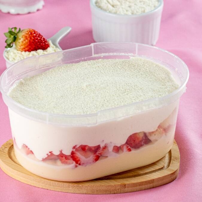 Delicioso Mousse de Ninho intercalado com Brigadeiro Branco, Morangos Frescos e Bolo Massa Branca molhadinha.