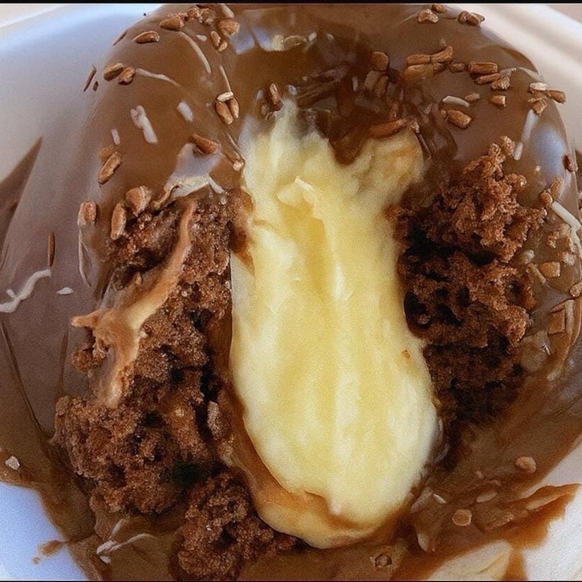 Fresquinho, com calda quentinha e recheio irresistível. Uma explosão de sabor em cada colherada.