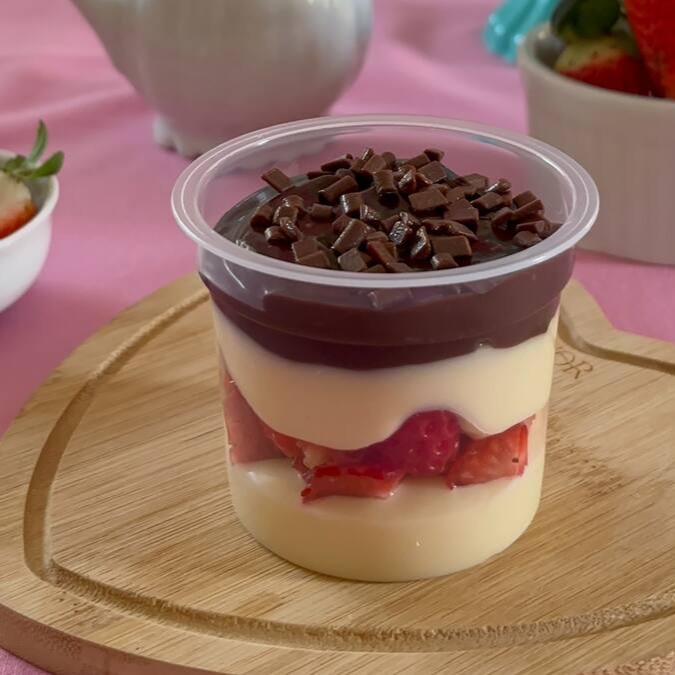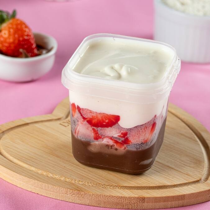 Camadas irresistíveis para adoçar seu Dia: brigadeiro de Ninho com muito morango, finalizado com chantilly. Uma explosão de sabor em cada colherada! Peso aproximado: 250 ml