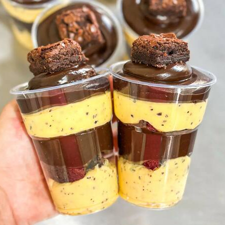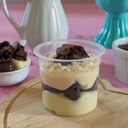 Camadas irresistíveis para conquistar seu paladar: mousse de maracujá cremoso, brigadeiro belga intenso e pedacinhos de brownie. Uma combinação perfeita de frescor e intensidade em cada colherada! Peso aproximado: 250 ml