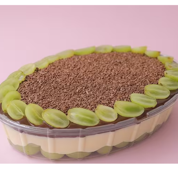Camadas de Brigadeiro Branco e Brigadeiro de Chocolate, acompanhadas por uvas verdes frescas e selecionados. Uma experiência gourmet irresistível em cada colherada. Peça agora e delicie-se com essa combinação única. - Serve aproximadamente 12 - não congelar. *Favorite nossa loja e receba promoções exclusivas.