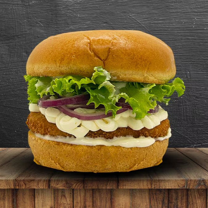 Pão brioche, hambúrguer de frango empanado 120g , cream cheese, alface, cebola roxa, picles, ketchup, mostarda e molho especial.