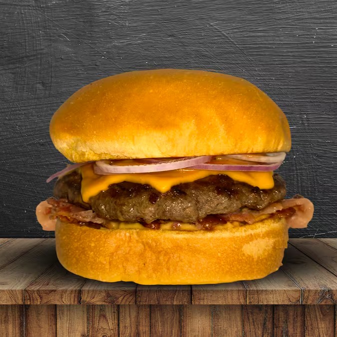 Pão brioche, carne angus 150g, 2 queijos cheddar fatiado, bacon, cebola roxa, ketchup, mostarda e molho especial.