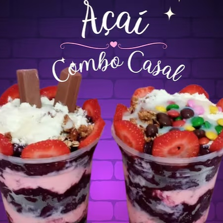 Super Combo Açaí Casal 440ml (Duas Unidades) Refrescante e cheio de sabor! Escolha 4 acompanhamentos grátis, como frutas frescas (morango, banana, entre outras), cremes especiais (Nutella Original, creme de avelã, creme de Ninho), e complementos deliciosos, como paçoca, granola, leite em pó, ou chocolate trufado. Personalize do jeito que você ama e aproveite a excelência em cada colherada!