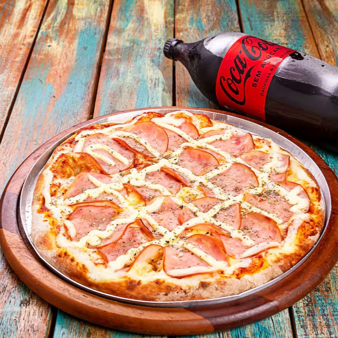 Exaltando a combinação perfeita entre a suavidade da muçarela, a sofisticação do lombo canadense e a cremosidade do Catupiry, a 'Grande Canadense' é uma das nossas pizzas mais requisitadas. Com 8 generosas fatias, ela é o pedido perfeito para compartilhar momentos deliciosos com amigos e família. Além disso, você desfruta de uma cortesia especial: uma refrescante Coca-Cola de 2 litros, disponível em diversas opções. É a combinação ideal para uma refeição incrível!
