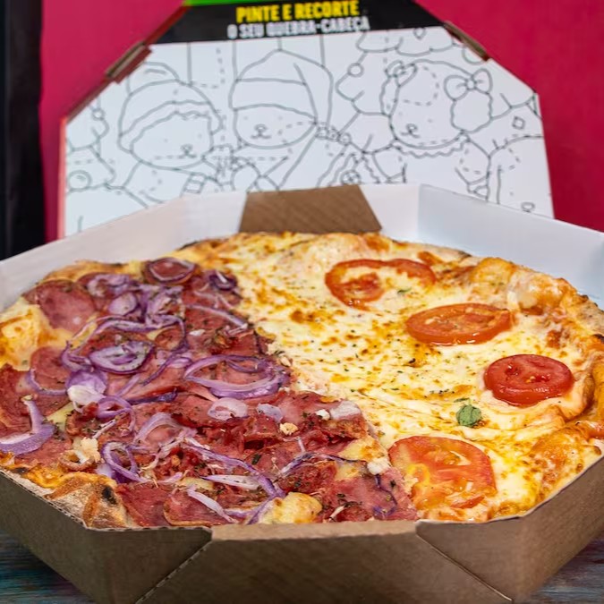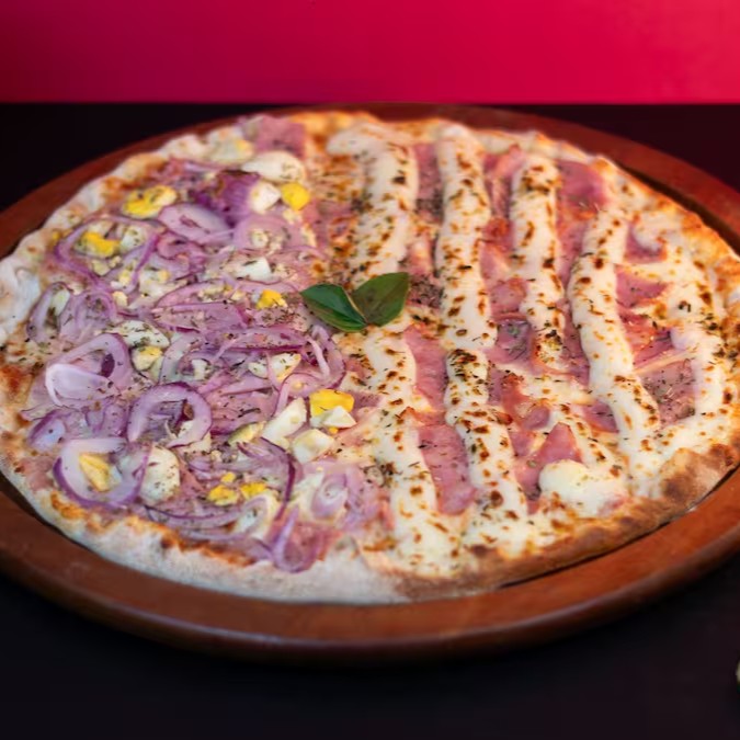 Pizza Grande Meia Portuguesa Meia Lombo Com Catupiry