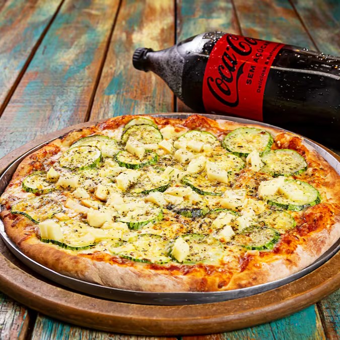 Exaltando a combinação perfeita entre a suavidade da muçarela, a contemporaneidade da abobrinha, a 'Zucchine' tem se tornado uma das nossas pizzas mais requisitadas. Com 8 generosas fatias, ela é o pedido perfeito para compartilhar momentos deliciosos com amigos e família. Além disso, você desfruta de uma cortesia especial: uma refrescante Coca-Cola de 2 litros, disponível em diversas opções. É a combinação ideal para uma refeição incrível!
