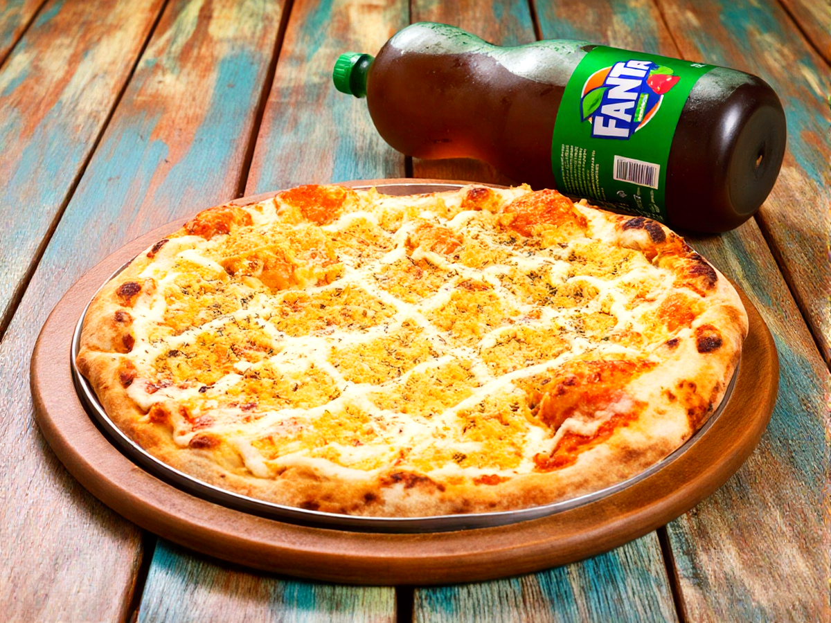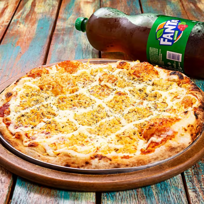Exaltando a combinação perfeita entre a suavidade da muçarela, a sofisticação e cremosidade do cream cheese, a 'Frango Cream Cheese' tem se tornado uma das nossas pizzas mais requisitadas. Com 8 generosas fatias, ela é o pedido perfeito para compartilhar momentos deliciosos com amigos e família. Além disso, você desfruta de uma cortesia especial: uma refrescante Coca-Cola de 2 litros, disponível em diversas opções. É a combinação ideal para uma refeição incrível!