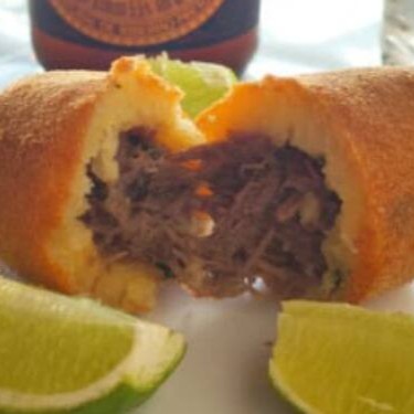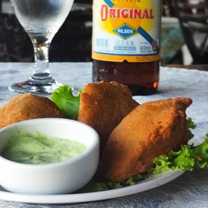 Massa pura de cabotiá c/ recheio de carne-seca e leve empanamento