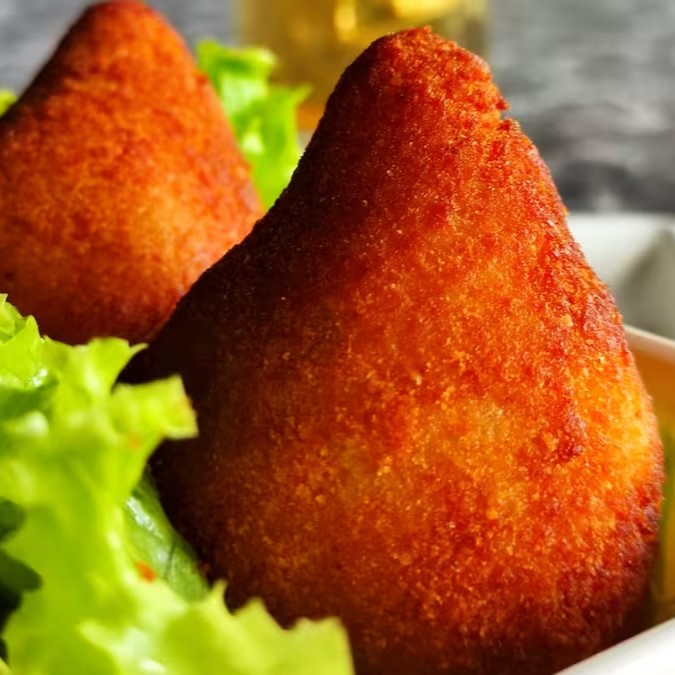 Pensa num trem bão! Nossa deliciosa coxinha com massa levíssima de mandioca, pouquinho de trigo só, e muito recheio de frango desfiado e com tempero que só o Cuiabar tem!