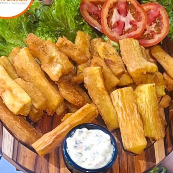 Uma mandioca frita, sequinha, crocante e super saborosa.