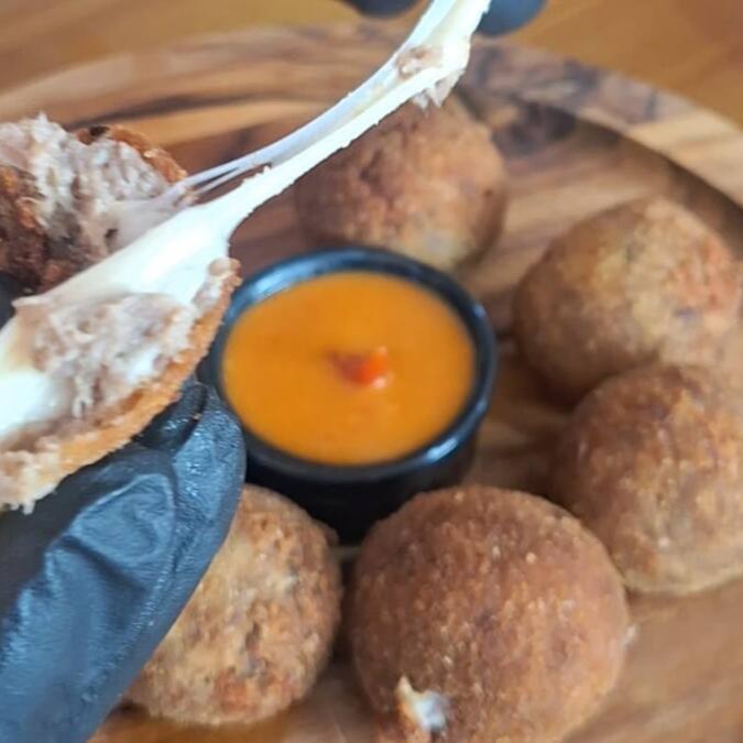 Delicioso Bolinho feito com Costela recheado com Queijo Mussarela. Porção com 8 Unidades grandes.