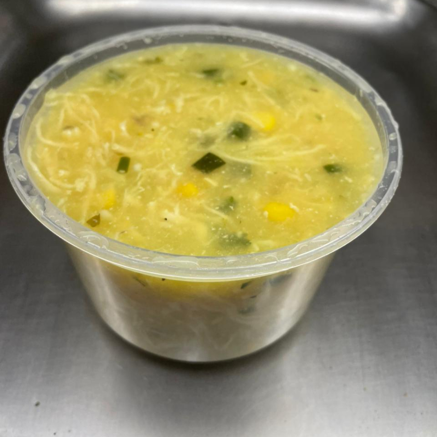 Caldo de Mandioca, Frango Desfiado, Milho Especiarias. Acompanha Pão, Queijo Ralado.