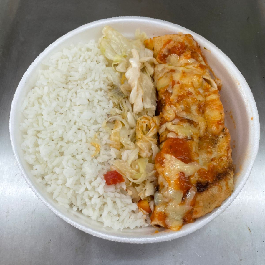 Filé de Frango Empanado com Molho e Queijo Mussarela . Arroz, Feijão + 2 a 3 Guarnições do Dia. Temos Tamanhos Tamanhos Maiores na Próxima Etapa.
