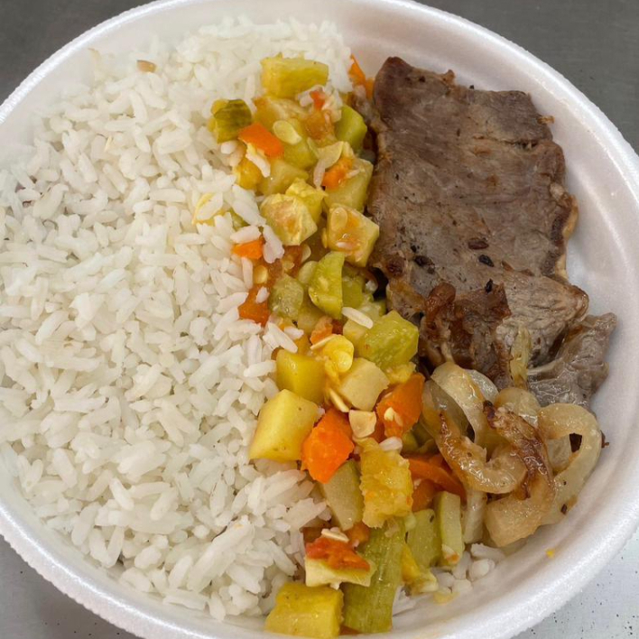 Frango á Passarinho. Arroz, Feijão + 2 a 3 Guarnições do Dia. Temos Tamanho Maiores na Próxima Etapa.