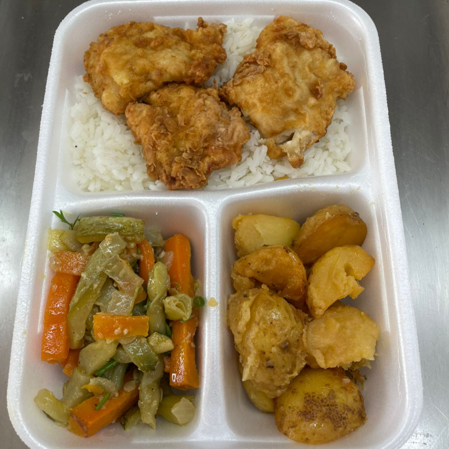 Filé de Panga á Milanesa, Saboroso e Suculento. Arroz, Feijão + 2 a 3 Guarnições do Dia. Temos Tamanhos Tamanhos Maiores na Próxima Etapa.