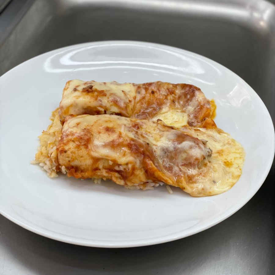 Carne Saborosa, Massa Leve, Molho de Tomate e Queijo Mussarela.