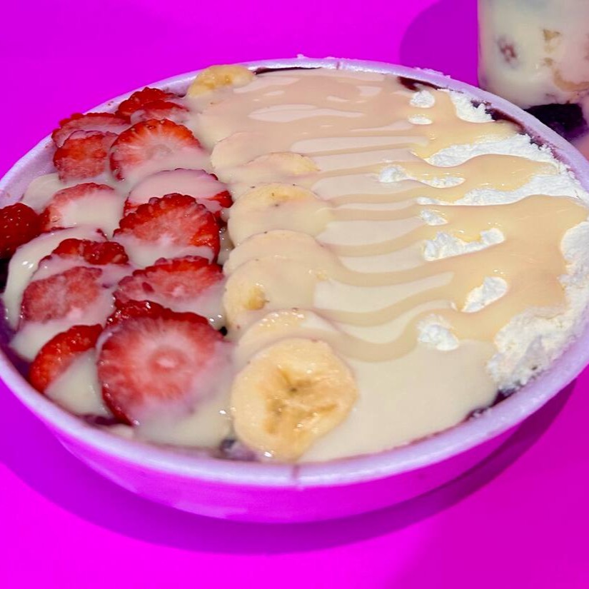 Novidade Irresistível uma explosão de Sabores a cada gole, Batida de Açaí, Leite e leite em pó, você ainda pode escolher frutas e acompanhamentos para encrementa-la