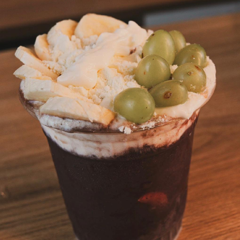 Açaí, leite condensado com leite em pó e duas opções de frutas