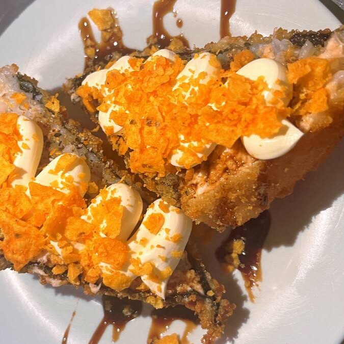 Hosso maki com pepino,kani, cream cheese e Doritos