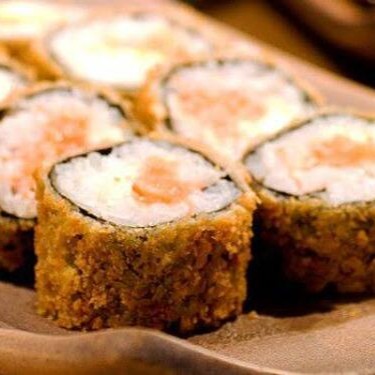 Temaki com arroz,salmão grelhado e cream cheese,empanado com frinha panko