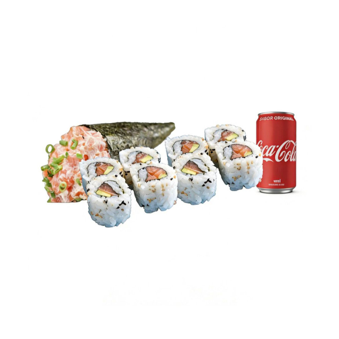 contem no combo 1 temaki filadelfia,8 un uramaki filadelfia e 1 coca 350ml