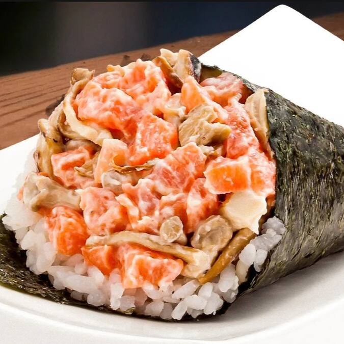 Alga nori, arroz shari, salmão fresco massaricado com cream cheese e cebolinha 180gm