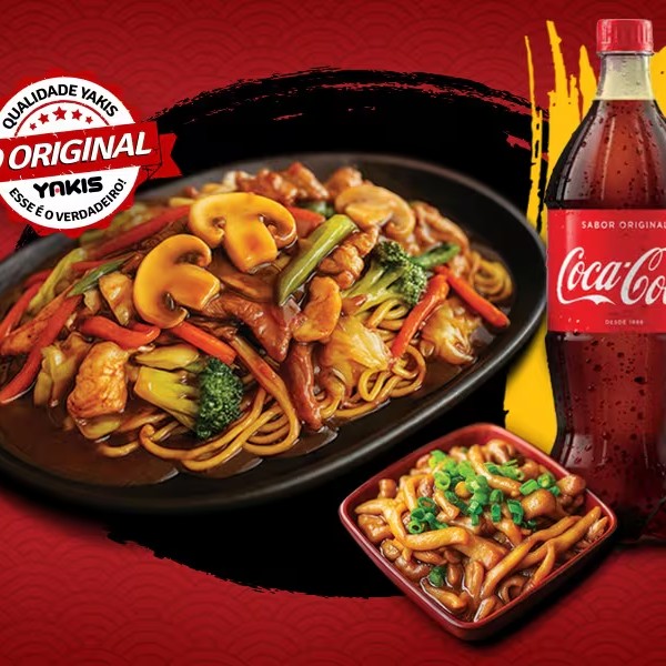 1 Yakis Tradicional Mini (300g) + 1 harumaki queijo + 1 coca lata (220 ml).