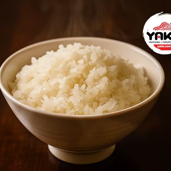 Arroz japonês cozido com água Kangen (alcalina). Não contém sal e nem gordura. 200g