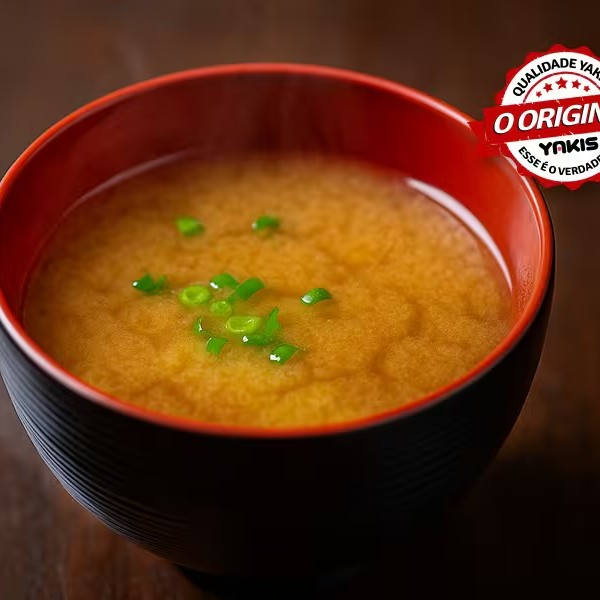 Sopa a base de soja com cebolinha e algas marinhas.