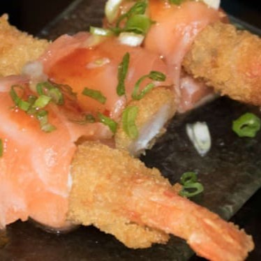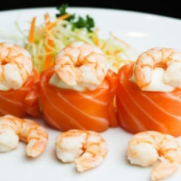 10 Uni De Camarão Enrolado Com Salmão Massaricado Com Azeite Tare