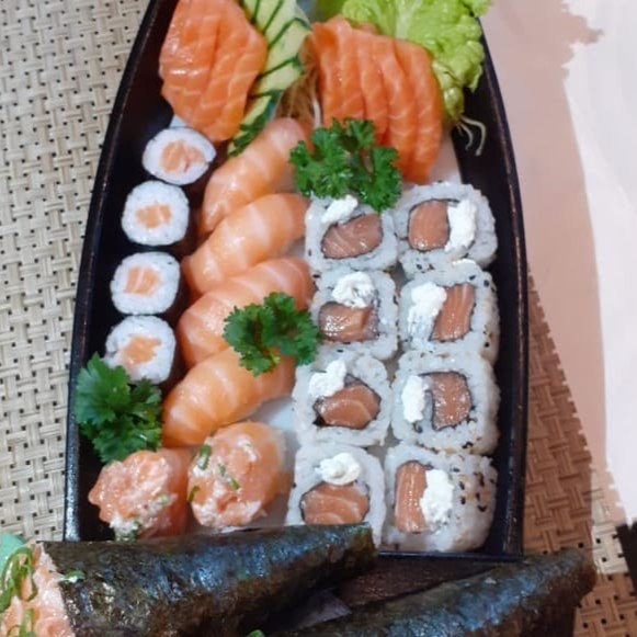10 Sashimi Salmão 8 Hossomaki 6 Niguiri Salmão 2 Luizinho