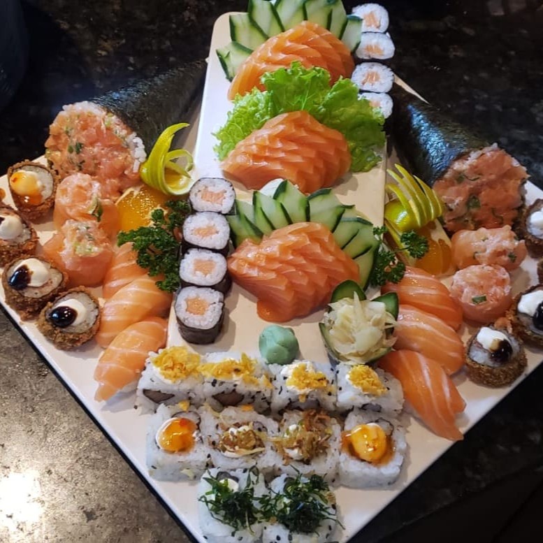 10 sashimis 8 uramakis 4 niguiris 4 hossomaki 2 joy 2 temakis de salmão